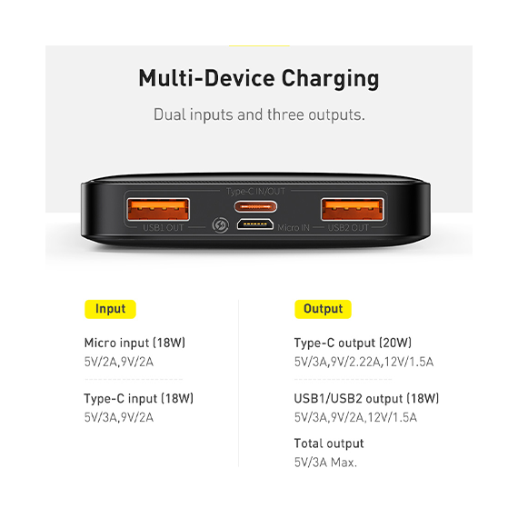 بیسوس یکی از برند هایی است که توانسته در تولید پاور بانک ها موفقیت های زیادی از خود نشان دهد و کیفت ساخت را به نهایت برساند . پاور بانک Dgital display مدل ppbd050501 دارای سه پورت خروجی (دو عدد USB-A و یک عدد USB-C) است و برای استفاده با اکثر دستگاههای پرقدرت USB/USB-C همچون تبلتها، آیفون و گوشیهای اندرویدی طراحی شده است. سیستم هوشمند آن تنظیمات شارژ را براساس دستگاه متصل شده تنظیم میکند و دارای نمایشگری بر روی بدنه میباشد که سطح باتری باقیمانده را نشان میدهد. با خرید این پاوربانک، کاربر مطمئن میشود که دستگاهی قابل اعتماد و ایمن را دریافت خواهد کرد که در طول مدت استفادهی تلفن هوشمند، عمر باتری آن را حفظ خواهد کرد و همچنین از بیشباری، گرم شدن و اتصال کوتاه مدار جلوگیری میکند. پاور بانک بیسوس با ظرفیت بالای 20000mAh که از باتری لیتیوم پلیمری برای ذخیرهی انرژی پایدار و قابل اعتماد استفاده میکند. با ظرفیت رتبهبندی شده 12000mAh در ولتاژ 5V/3A، این پاور بانک برای عملکرد بلندمدت طراحی شده است. نرخ تبدیل انرژی آن بیشتر از 75٪ است که اطمینان از استفاده کارآمد از انرژی را به ارمغان میآورد. ورودی شامل ورودی میکرو با ولتاژ 5V/2A، 9V/2A و ورودی تایپ-سی با ولتاژ 5V/3A، 9V/2A میباشد. برای خروجی، خروجی تایپ-سی 5V/3A، 9V/2.22A، 12V/1.5A ارائه میدهد، در حالی که خروجی USB1/USB2 5V/3A، 9V/2A، 12V/1.5A را فراهم میکند. خروجی کلی به حداکثر 5V/3A محدود شده است. ابعاد کوچک آن با اندازههای 153×68.8×29.5 میلیمتر و وزن 452 گرم، این پاور بانک برای حمل و نقل بدون کاستی از قدرت طراحی شده است. این پاور بانک برای شارژ انواع دستگاهها از جمله تبلتها، گوشیهای هوشمند و غیره مناسب است و به عنوان راهحل معتبر انرژی در حال حرکت خود محسوب میشود.