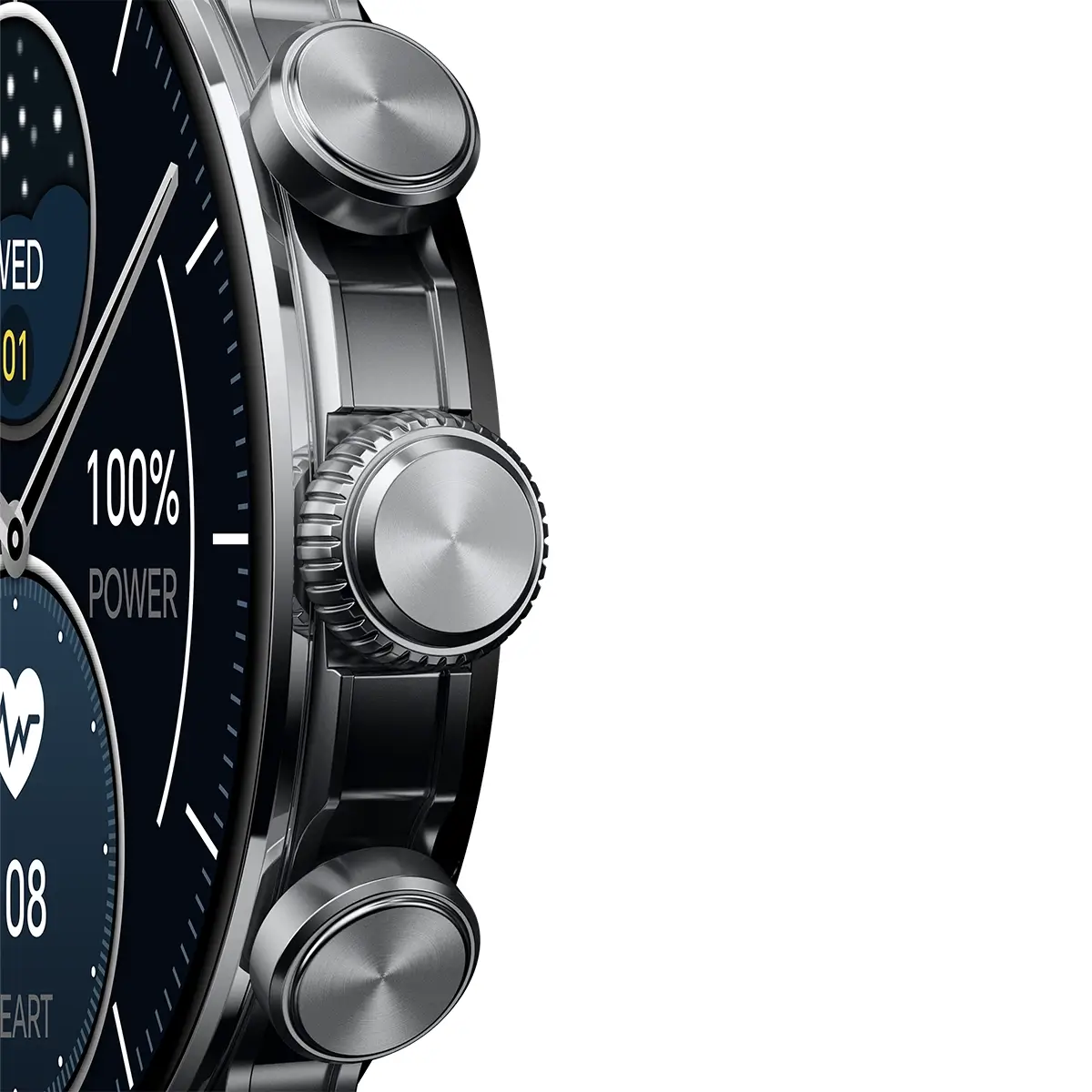 اولین مواجهه با Glorimi GX ClassicFit، حس برخورد با یک کالای لوکس و پریمیوم است. برخلاف بسیاری از ساعتهای هوشمند بازار که بدنهای پلاستیکی دارند، گلوریمی در این مدل از متریال باکیفیت استفاده کرده است.