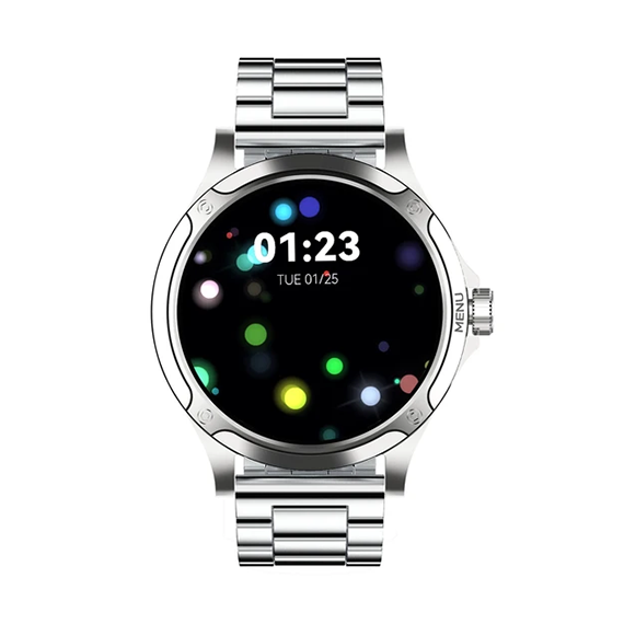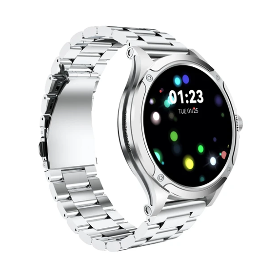 اولین چیزی که در این ساعت هوشمند دیده میشود، طراحی آن است. بدنه ساعت از فلز ساخته شده و به دلیل وزن 40 گرمی آن احساس سنگینی زیادی ایجاد نمیکند. این ویژگی برای کسانی که طولانیمدت ساعت را بر دست دارند، اهمیت زیادی دارد. بند ساعت نیز از فلز است که با نوع کاربری رسمی و روزمره آن هماهنگی کامل دارد. قفل بند، سگکی قلابدار، اطمینان از جاافتادن آن را فراهم میکند و مانع از افتادن ساعت از دست میشود. فرم صفحه نمایش گرد و اندازه آن (۱.۴۳ اینچ) با رزولوشن عالی (۴۶۶×۴۶۶ پیکسل) تجربه مشاهده بصری فوقالعادهای ارائه میدهد. نوع صفحه نمایش Amoled، با کیفیت تصویر بالا و رنگهای زیبا، تجربه کاربری را بهبود میبخشد. طراحی کلی ساعت، مدرن و همزمان سنتی است که میتواند در هر موقعیتی، از جلسات رسمی تا برنامههای روزمره، مناسب باشد.